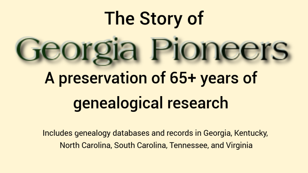 Yes, georgiapioneers.com contains that much research! To make research more accessible, I merged my seven websites and a vast collection of old genealogy books with georgiapioneers.com!